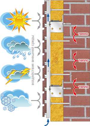 Вентилируемый фасадуменьшает негативное влияние окружающей среды на стены дома