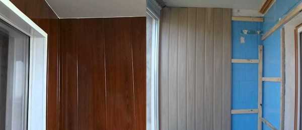 На остекленном балконе потолок обшивают часто или тем же материалом, что и стены, или пластиковыми панелями. Можно сделать потолок из гипсокартона.