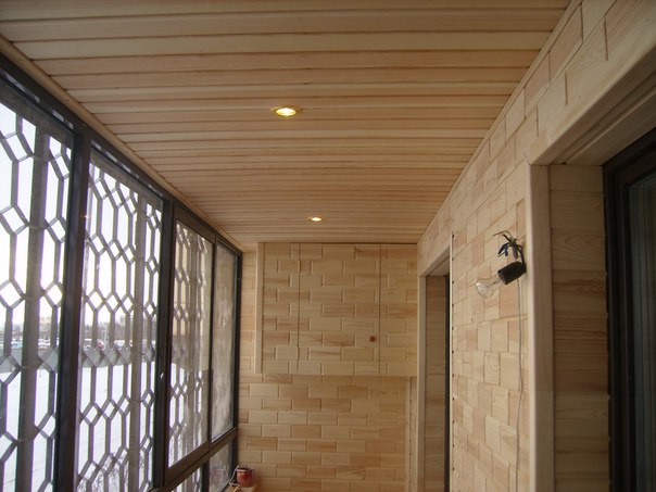 Для того чтобы подвергнуть стену внутренней отделке применяется блокхаус с шириной в 90 миллиметров. Вагонка, изготовленная с применением пластика является более долговечной и дешевой по сравнению с деревянными аналогами.