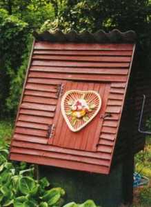 После того как колодец построен, его стены обошьем внахлест, а для крыши используем кусок большого, старинного толстого, прочного шифера.