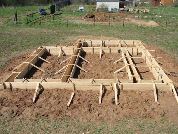 - устанавливаем опалубку доской в 15 см по всему периметру будущей плиты, укрепляем ее с тем, чтобы каркас не развернуло цементной массой;