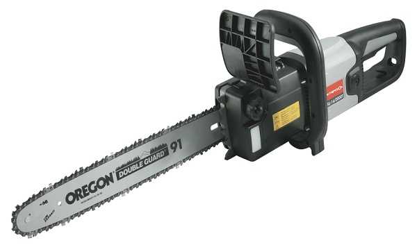 Открывает рейтинг электропил недорогая модель отечественного производства. Она оборудована надежным электродвигателем с номинальной потребляемой мощностью 2000 Вт. Аппарат весит 6 кг и работает с шиной длиной 40 см марки «OREGON» с шагом цепи 3/8 дюйма. Автоматическая подача смазки на трущиеся элементы осуществляется плунжерным насосом с объемом бака 85 мм.