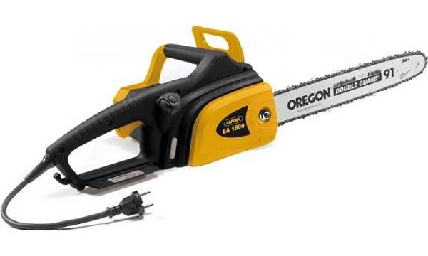 Продолжает рейтинг цепных пил итальянская модель в китайском исполнении Alpina EA 1800. Она относится к категории бытового или фермерского инструмента. Ее можно купить для периодических работ в загородном доме. Удачное сочетание компактных размеров с малым весом 4,4 кг и мощностью 1800 Вт подойдет даже для непрофессионала, не отличающегося телосложением лесоруба. Длина пильного полотна 35 см дает возможность в спокойном режиме выполнять распил пиломатериалов, заготовку дров или обрезку сухих сучьев.