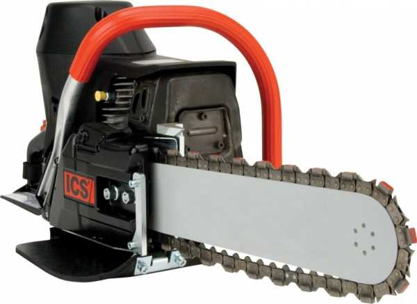 Двигатель расположен таким образом, что ведущая звездочка связана с валом прямым приводом. Это исключает потери мощности и увеличивает динамику цепи. Пила мгновенно набирает обороты, что важно при работе с большим количеством материала небольшой толщины. Эффективность работы такой пилы высока практически во всех случаев, когда плоскость пиления вертикальна или находится под небольшим углом от вертикали.