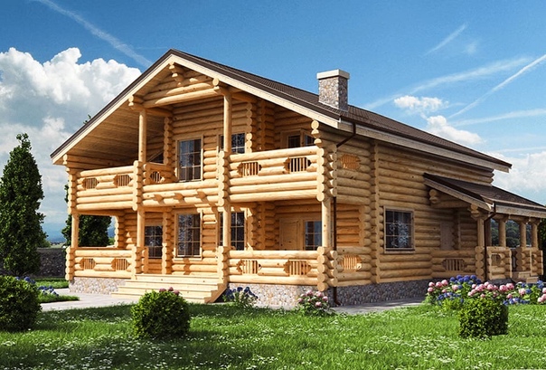 Бревенчатый дом гармонично впишется в ландшафт и выгодно выделится на фоне других строений;