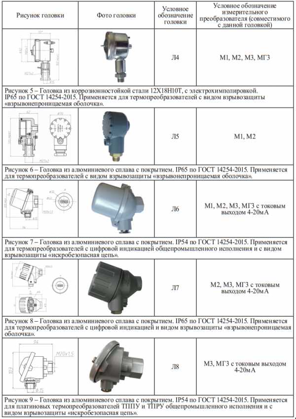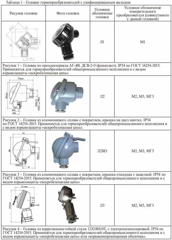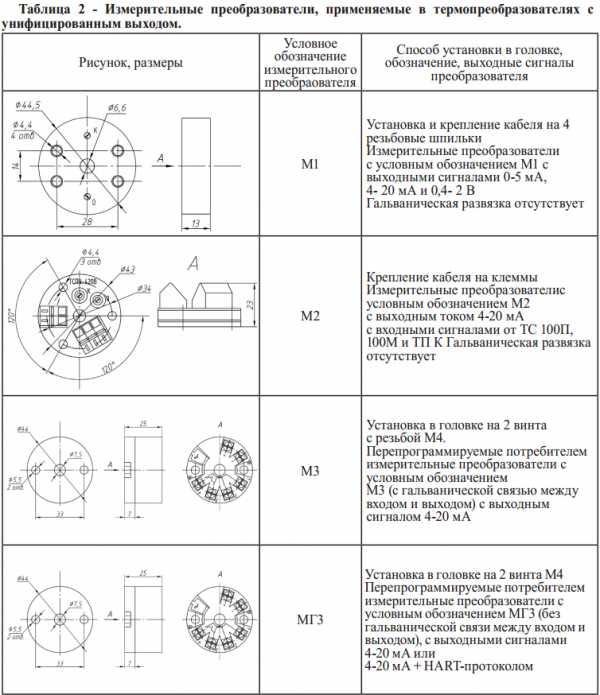 Головка и электронный измерительный преобразователь термопреобразователя с унифицированным выходным сигналом могут иметь различные исполнения.