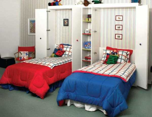 Актуальны откидные кровати для детских комнат. Дети народ непоседливый, им нужно много места для игр, прыжков и пряток. Поэтому спальное место, замаскированное под шкаф – идеальный вариант.