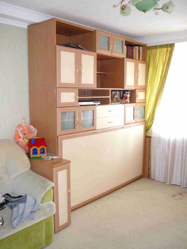 Откидная кровать, которая легко убирается в шкаф – это удобно и практично.