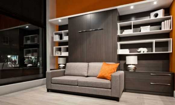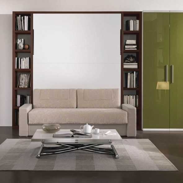 Подъемная кровать с диваном в интерьере дома: 75 фото идей