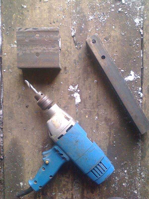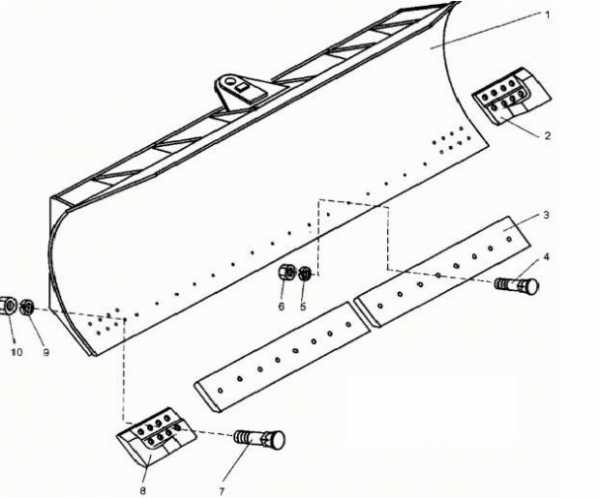 - Для усиления нижней части отвала установите прочный стальной нож. В ноже проделайте сверлом 3 отверстия с шагом 10 и диаметром 6 мм. При установке ножа на ковш положите между элементами резиновую прокладку;
