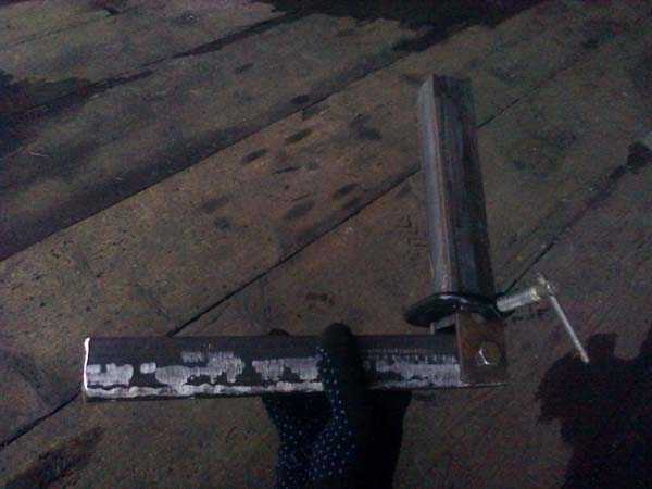 - С тыльной части ковша приваривается профильная труба. Для обеспечения прочности фиксации целесообразно дублировать сварочный шов несколькими болтами.