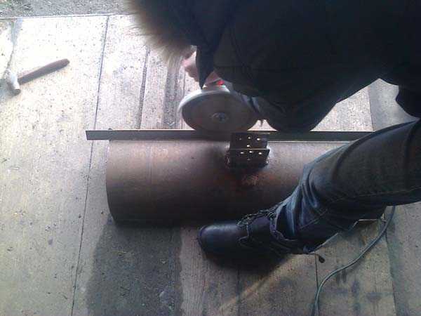 Аналогичным способом проводится изготовление ковша из газового баллона. Поскольку его стенки имеют достаточную прочность, то их дополнительное усиление не требуется.