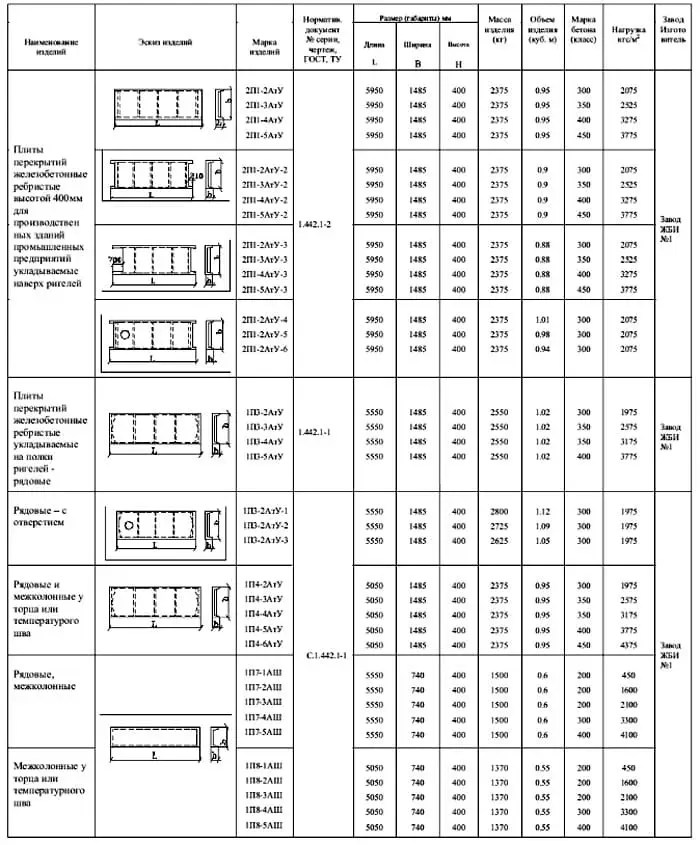 Так же в техническом описании заложены величины предельной огнестойкости. Любые ЖБИ производятся с соблюдением конкретных нормативов. ГОСТ для панелей перекрытия допускает при согласовании с потребителем выпуск изделий отличающихся типом и размерами.