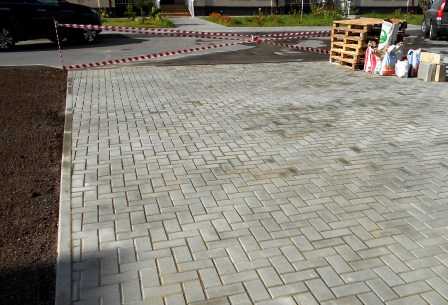 На фото: мощение площадки под автомобиль по цене 800 руб/м2.