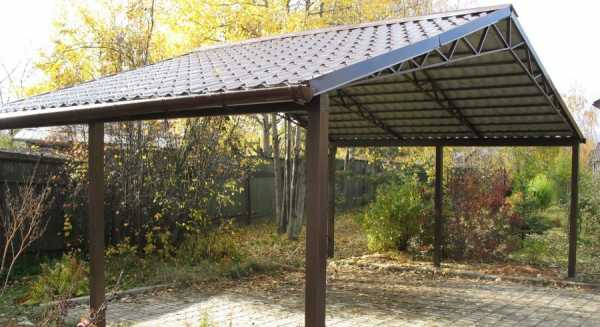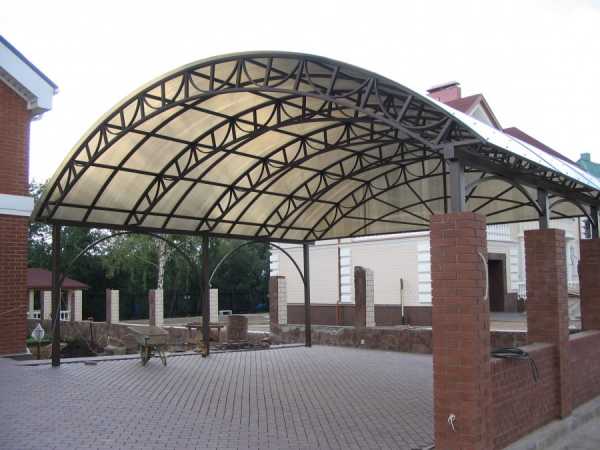 - Каркас для навеса. Какая же парковка без действительно надежной крыши? Она защищает транспортное средство от негативных факторов: снега и дождя, пыли, града. Наверняка, у вас бывали ситуации, когда рано утром автомобиль приходилось чистить от помета птиц, листьев и пыли. С добротным навесом этого не случится. В качестве материала используем уголок, профилированную трубу, дерево, кирпич и даже камень. Не пожалейте денег и сделайте прочный фундамент. Он сделает конструкцию гораздо надежнее.