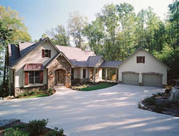 На небольших участках лучше обойтись паркингом, построенным сразу за воротами – при таком размещении не потребуется строить широкий подъезд к паркингу через весь двор.