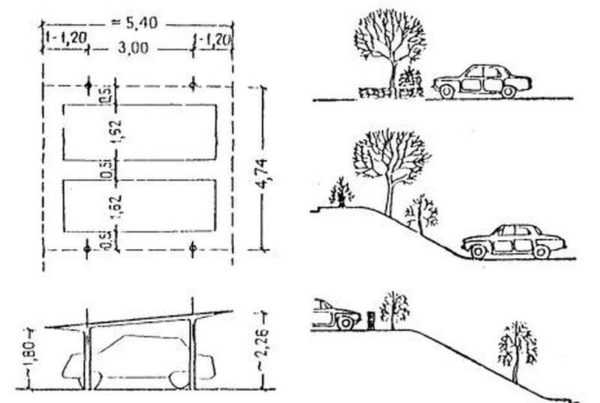 Последний пункт особенно актуален, когда площадка под машину на даче строится без посторонней помощи. Во-первых, вам нужно сделать хорошее, надежное основание, во-вторых, обеспечить защиту транспортного средства от воздействия ультрафиолетовых лучей.
