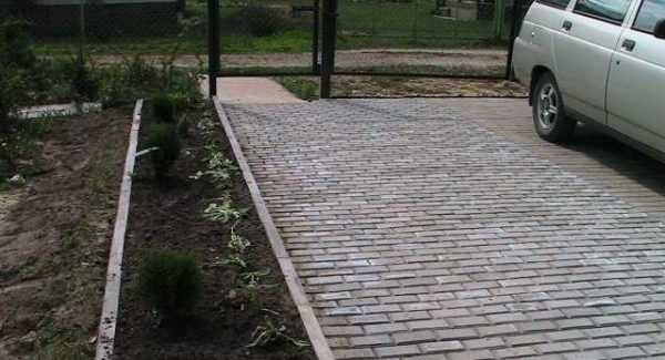 Есть еще мощеные дачные заезды. Для мощения используется кирпич, природный камень. Эти варианты хороши, если грунты не глиняные. Быстрее всего разрушится кирпич — он для таких условий не предназначен, но как временная мера по обустройству вполне сгодится.
