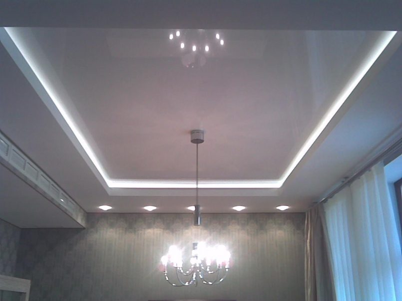 - Ленточная подсветка, уложенная по периметру одноуровневого потолка;