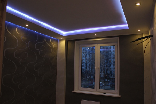 Некоторые дизайнеры утверждают, что светодиодный шнур, уложенный над оконным проемом в комнате с парящем потолком, в какой-то мере может заменить дневной свет. И тем самым увеличить степень комфорта в помещении.