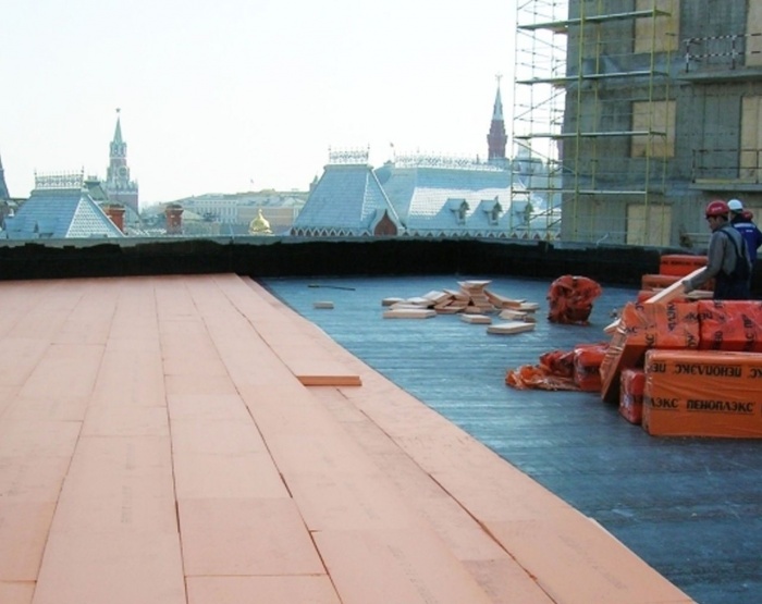 Процесс утепления кровли является обязательным во время строительства. Это дает возможность сохранить тепло, которое поднимается вверх. Для этих целей и разрабатывался данный вид листового пеноплекса. Он применяется с любыми кровельными настилами. Благодаря своим особенностям пеноплекс практически не добавляет веса крыше, поэтому стропильная система не пострадает. Кровельный пенополистирол под маркой Roof обладает дополнительной устойчивостью к огню, что очень важно. Для качественного утепления в местностях с умеренными зимами, где температура не опускается ниже нуля хватит и 50 мм. Листы стандартного размера придется подрезать под требуемый, который будет зависеть от расстояния между стропилами.