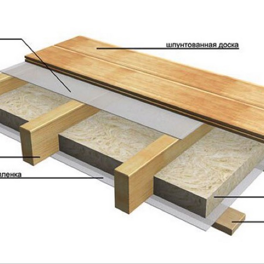 Рисунок 1. Схема утепления перекрытий первого этажа по деревянным балкам:
