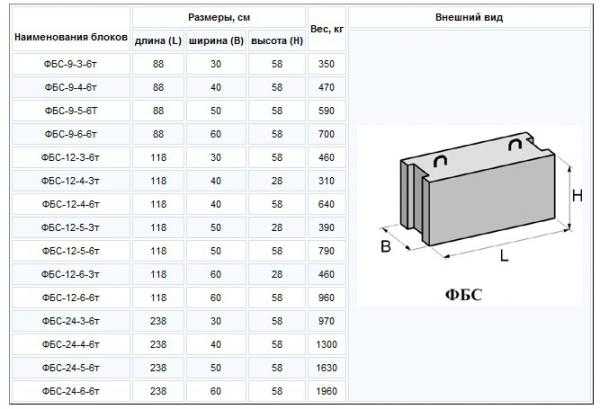 Размеры фундаментных блоков фбс: технические характеристики и маркировка