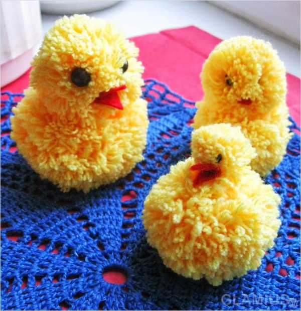 Сделать такую композицию будет не так сложно, как кажется на первый взгляд. Фигуры взрослых птиц можно сделать из картона, как уже описывалось выше, а птенцов — из готовых помпонов или комков ваты, плотно свернутых, смоченных в растворе подкрашенного желтой краской клея ПВА и тщательно просушенных. Комок побольше — тельце, поменьше — голова. Ножки и клюв можно сделать из спичек, крылышки и глазки нарисовать.