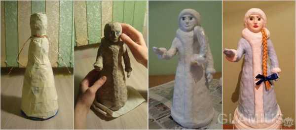 Большинство работ может быть успешно изготовлено из бумаги. Это очень пластичный и дешевый материал, из которого можно сделать множество самых разных вариантов изделий — от праздничных гирлянд и елочных украшений до объемных масок и фигурок. Цветная бумага и картон хорошо подходят для аппликаций, а также для создания игрушек и различных скульптурных групп, в том числе и с использованием техники оригами. А из старых газет можно сделать хоть петуха, хоть Деда Мороза со снегурочкой в технике папье-маше.