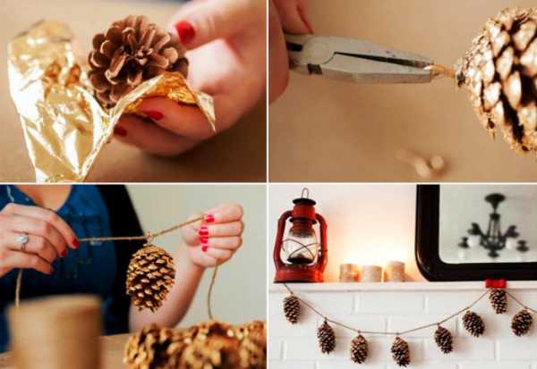 Сосновые шишечки прекрасно подходят для изготовления декоративных новогодних гирлянд. Главное – заранее заготовить побольше этого природного материала, прогулявшись по ближайшему лесопарку. Если же в ваших местах сосны не растут – не отчаивайтесь, ведь для любителей творчества в наши дни шишки заготавливают чуть ли не в промышленных масштабах, так что перед Новым годом вы обязательной найдете упаковки с ними на магазинных полках. Кроме того, вам будут нужны такие предметы: