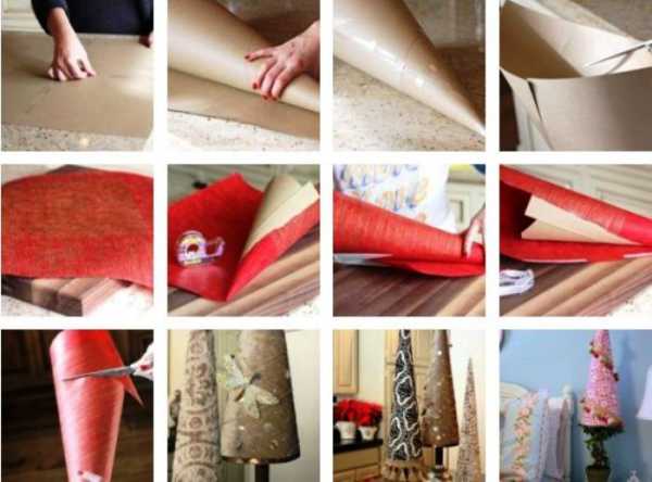 Шаг 7. Начинаем оборачивать конус бумагой по диагонали. Бумага должна лечь на конус очень плотно.