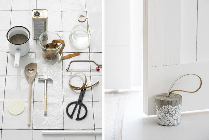 Из цемента можно сделать оригинальные подсвечники. Выделяется несколько интересных вариантов. Традиционно смотрятся изделия цилиндрической формы . Они представляют собой цилиндр из цемента, внутрь которого вставляется свеча. При изготовлении используются 2 цилиндра разного диаметра, между ними заливается раствор. Вначале берется большой цилиндр, и в его нижней части формируется дно из цемента. После этого внутрь вставляется меньший, заливаются стенки.