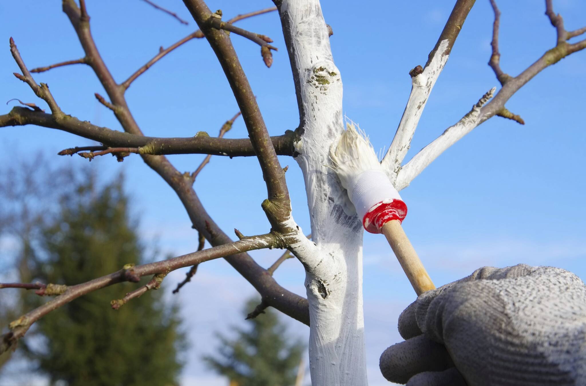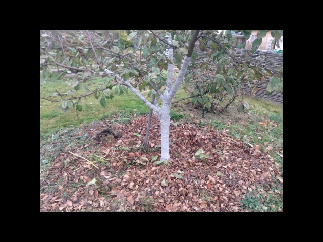 Обычно стволы деревьев и основания нижних ветвей нужно белить в осенний период, чтобы предохранять их от «вредных» жучков и защитить от ожогов солнечными лучами ранней весной.