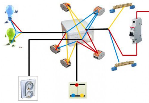 Как видите, все виды подключения в распределительной коробке вполне можно выполнить своими руками. Главное быть внимательным и не перепутать фазные, нулевые и защитные провода. Самым простым способом для этого является соблюдение рекомендаций ПУЭ. Ведь цветовое обозначение не даст вам скрутить вместе провода разных цветов. А это практически стопроцентная гарантия правильности вашей схемы.