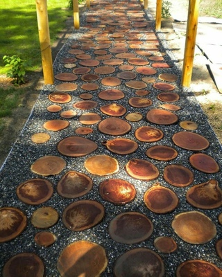 Любое натуральное покрытие обладает целым рядом неоспоримых преимуществ перед искусственным.Что же касается покрытия из спилов древесных стволов, то ситуация тут не совсем однозначная.