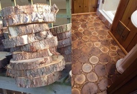 Такие обрезки можно также заказать на пилорамеВсе торцевые срезки должны быть одинаковой толщины, чтобы избежать ситуации с торчащим над общим уровнем полов травмоопасным «пеньком».