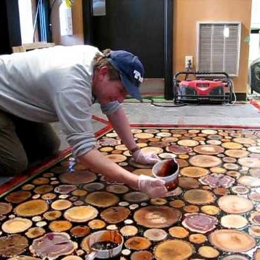Когда все высохнет, пол нужно будет отшлифовать. Чтобы такое чудо-покрытие служило дольше, каждый срез нужно хорошенько пропитать антисептиком. Кроме того, перед укладкой древесина должна быть качественно просушена.