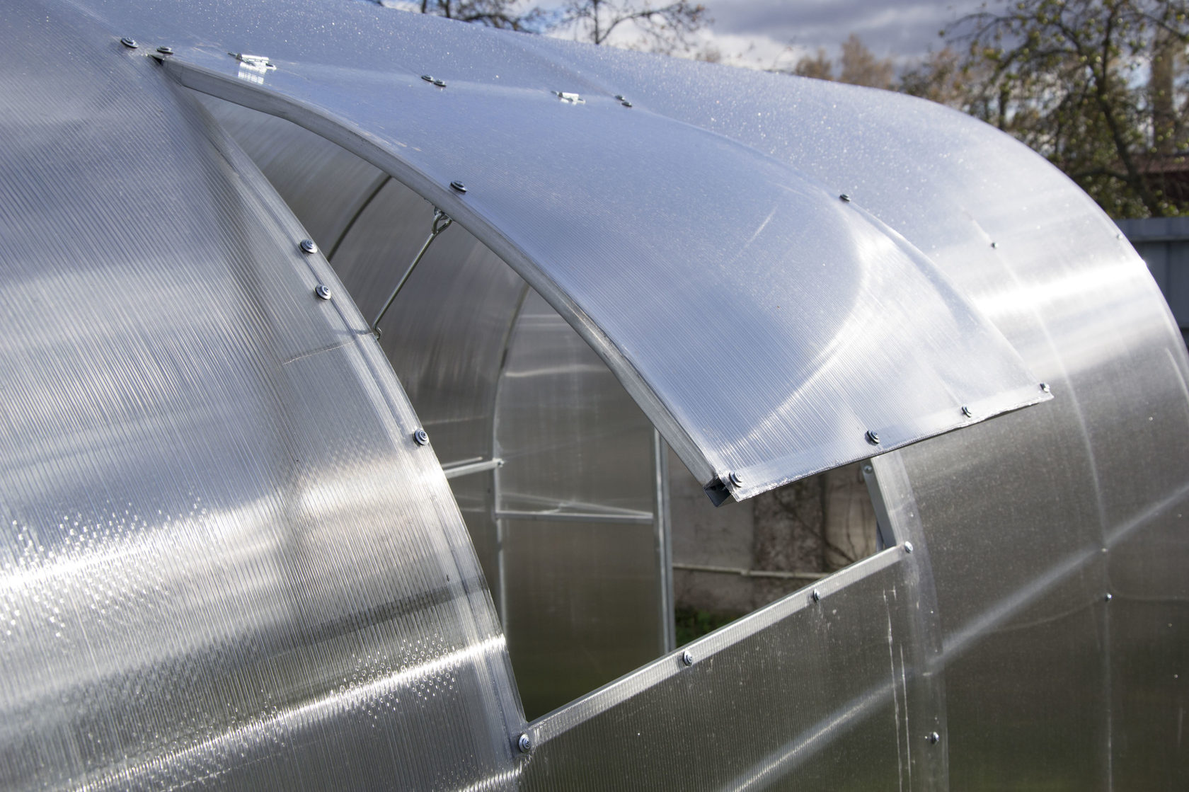 Теплицы из поликарбоната прочнее и в 200 раз прочнее стекла. Когда необходимо заменить поликарбонат, панели легко снять по отдельности для ремонта. Хотя поликарбонат долговечен, его следует обработать УФ-защитным средством, чтобы он не пожелтел и не сломался.При правильном уходе поликарбонат может прослужить около 10 лет, что составляет малую долю от срока службы стекла.