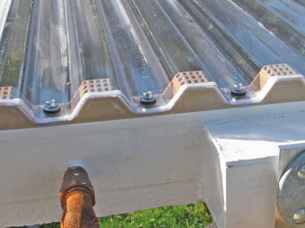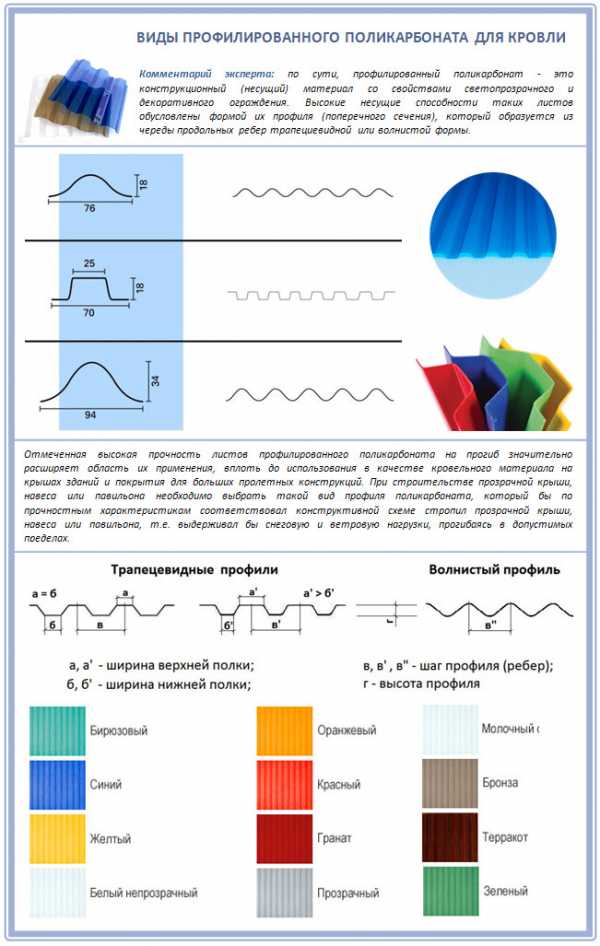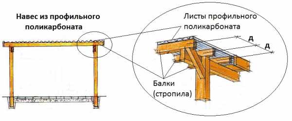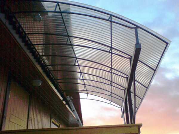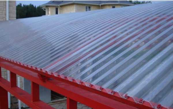 Профилированный поликарбонат чаще всего применяют для постройки навесов и карнизовДостоинства: