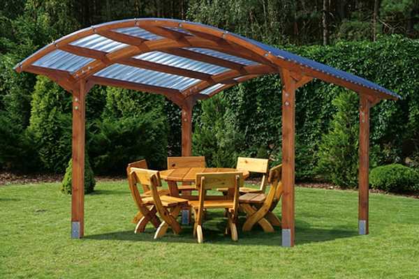 Применяется для кровли навесов, террас, козырьков, беседок, теплиц, парников.