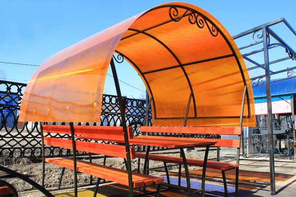 Прозрачность материала важна в тех случаях, когда нужно обеспечить поступление естественного света внутрь, например, теплиц, а вот для навесов, беседок, и других сооружений, предназначение которых — именно защита от солнечного света, этот вариант неприемлем. Зато решить проблему помогут непрозрачные полотна. Но это далеко не все объекты, где находят применение подобные поликарбонатные панели. Они используются для изготовления: