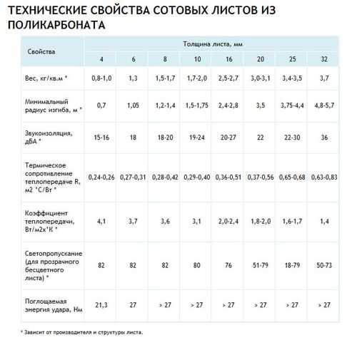 Сотовый поликарбонат часто используется для обшивки теплиц - светопропускной способностью, зависящей от толщины листа: при 4 мм – 82%, при 6 и 8 мм – 80%, при 10 и 16 мм – 72%, при 25 мм – до 55%;