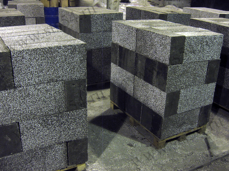 Блоки изготавливают из цемента, чаще всего используют портландцемент М400, и полистирольных шариков, уменьшающих его вес и увеличивающих способность сохранять тепло. Иногда для прочности в смесь добавляют песок, а также разные химические добавки, которые ускоряют процесс твердения или делают полистирол бетон более пластичным.