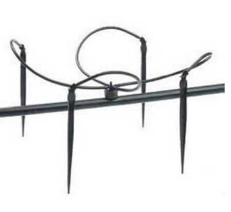 Установка капельной ленты – не единственный способ полить растения с помощью разбрызгивания. Существует вариант подачи воды капельницами. В данном случае кроме них необходимо будет использовать и шланги.