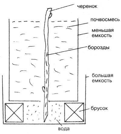 д.) и 6 см земли. Устанавливают черенок, свободное пространство заполняют грунтом. До посадки саженцы держат на подоконнике, поливая по мере высыхания водой комнатной температуры.