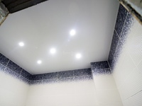 В ванной комнате вполне возможно сделать натяжной потолок своими руками. Выложить ПВХ-панели и обшить их совсем несложно, если следовать нашим рекомендациям. Собрать можно любые потолки, например, зеркальные, с рисунком или аквапанель. Выбор остается за вами.