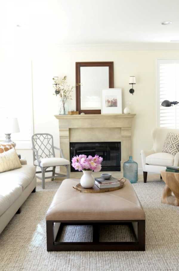 Фигура, расположенная в центре, например вокруг люстры, придает комнате аккуратности и не нарушает гармонии.