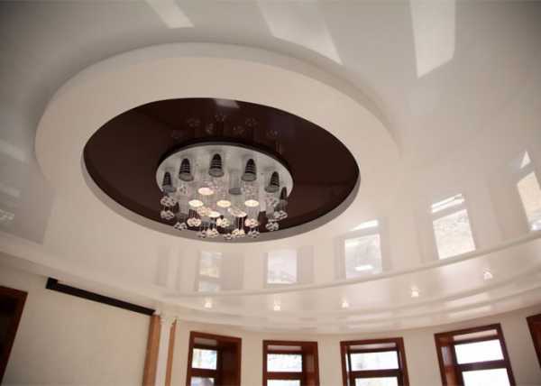 Обратите внимание: для конструкции с овальным элементом предпочтительны высокие помещения. Если ваш потолок ниже, чем 2,5 м, не стоит устанавливать конструкцию такой формы: она значительно уменьшит пространство визуально.
