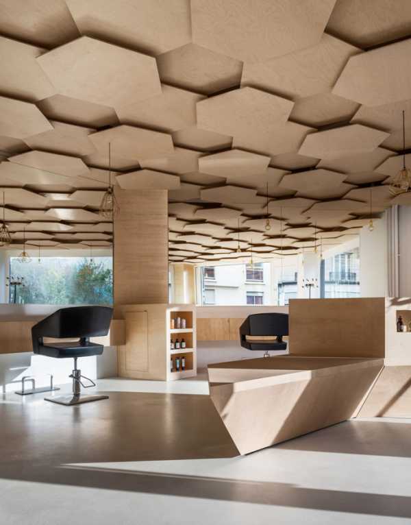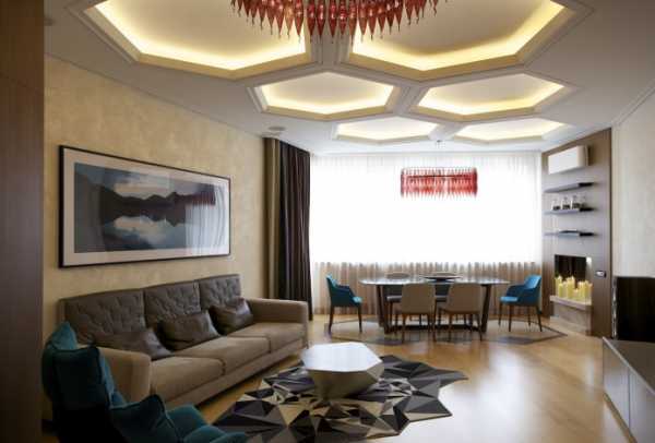 Различные многоугольные фигуры, например шестигранники задают потолочному пространству особой динамики и наполняют помещение современными нотками.