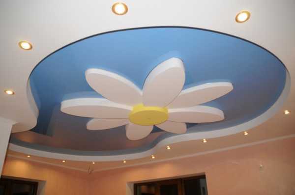На фото фигурный комбинированный потолок в форме цветка.
